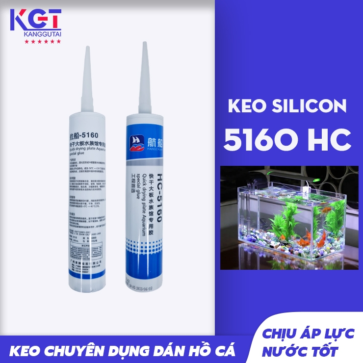 Keo silicon HC – 5160 là keo một thành phần màu đen, không độc hại, không dung môi để sử dụng trong ứng dụng xây dựng hồ cá. Đây là loại keo chất lượng cao có khả năng bám tuyệt vời với kính và nhiều bề mặt khác. Chịu được áp lực nước tốt.
